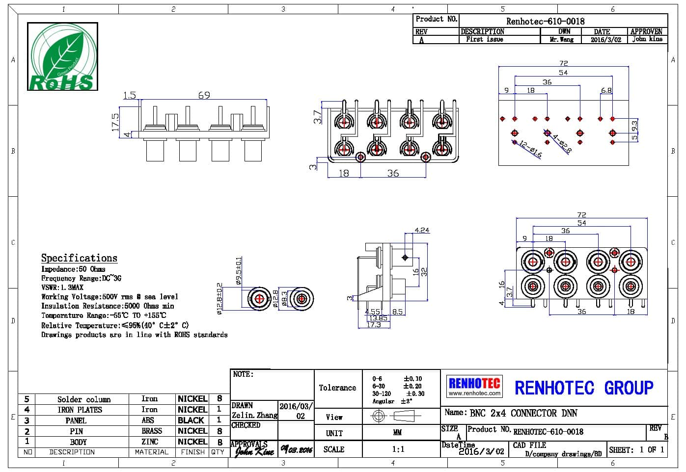 | 頻率范圍 | 50 ohm 為 0~4 GHz |