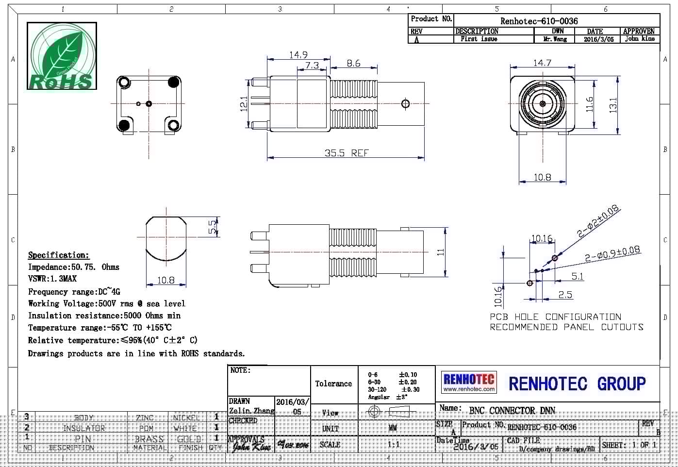 | 阻抗 | 50 ohm |