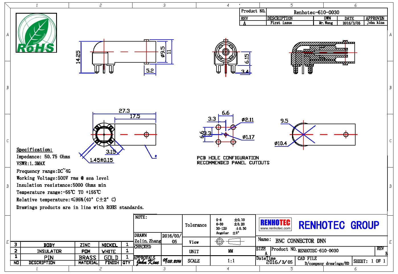 中心接觸電阻 ≦ 1.5 mΩ (Milliohms max.)