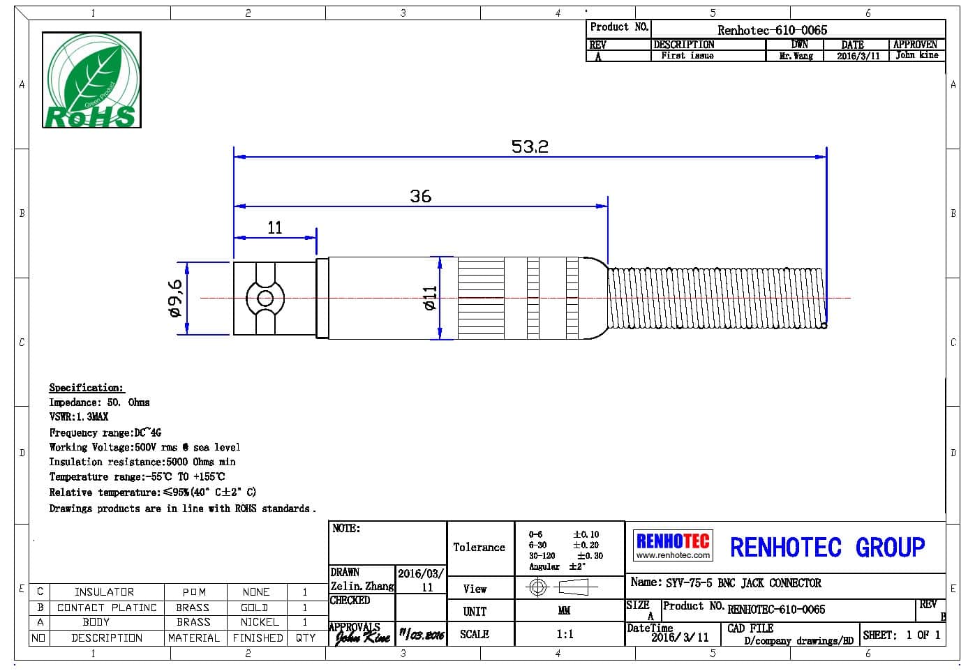 | 電壓駐波比 | 直式 ≦ 1.22/3GHz / 彎式≦ 1.30/3GHz |