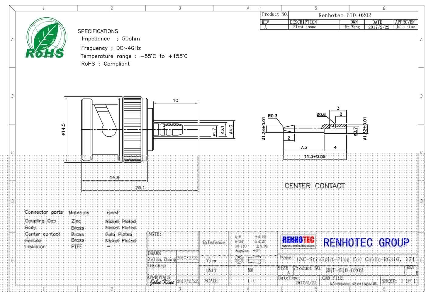 | 中心接觸電阻 | ≦ 1.5 mΩ (Milliohms max.) |