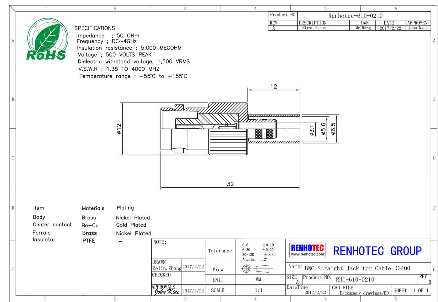 | 頻率范圍 | 50 ohm 為 0~4 GHz |