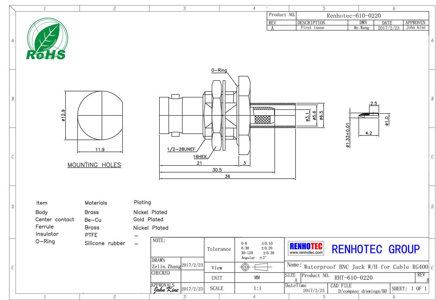 | 電壓駐波比 | 直式 ≦ 1.22/3GHz / 彎式≦ 1.30/3GHz |