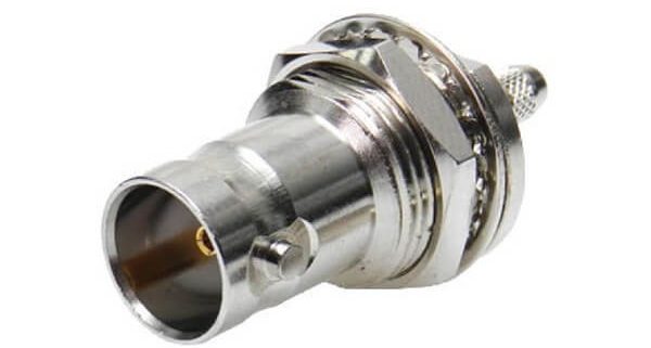 BNC連接器75Ohm直式母頭前鎖穿墻壓接式接同軸線纜