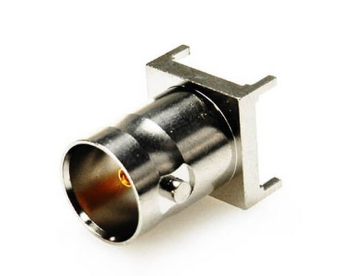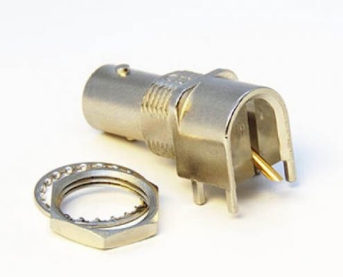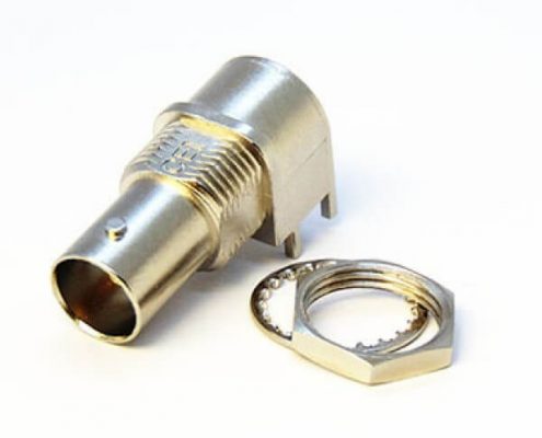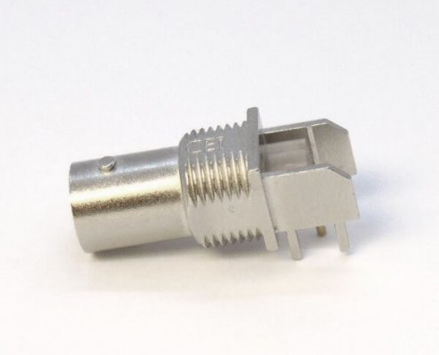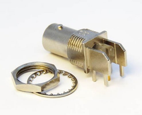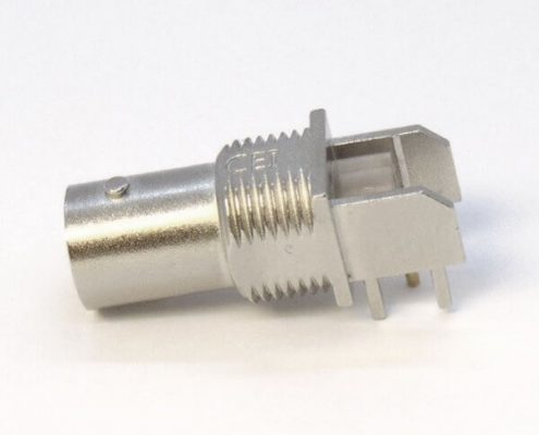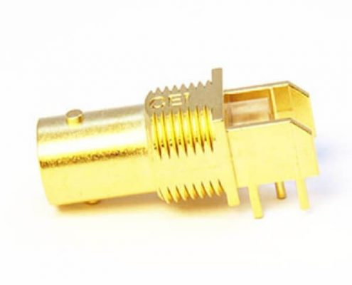 BNC連接器鍍鎳彎式母頭穿孔式接PCB板厚度8mm
