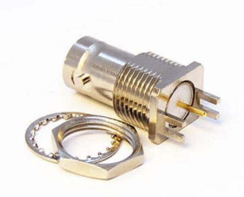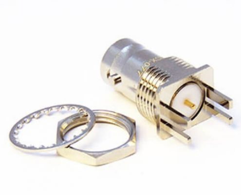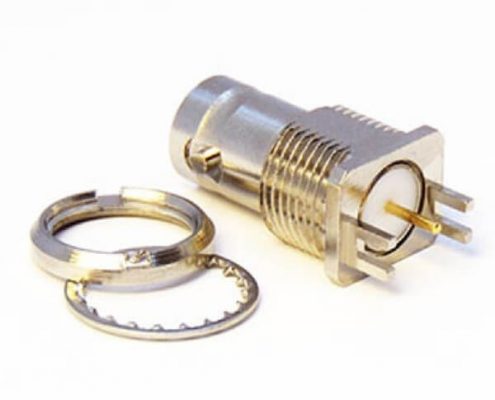 HD-BNC接口直式母頭連接器穿墻式接PCB板鍍鎳1.6mm