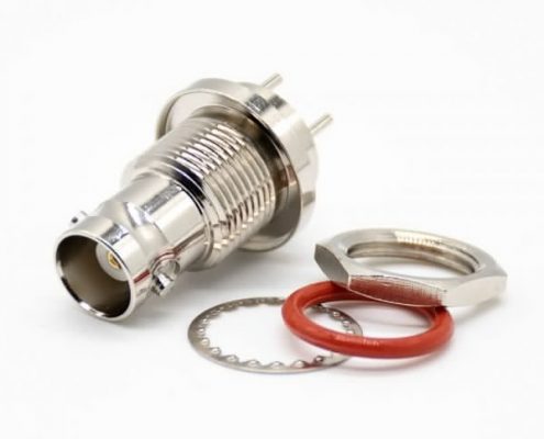 BNC接頭防水母頭直式標(biāo)準(zhǔn)75ΩPCB板安裝插孔鍍鎳連接器