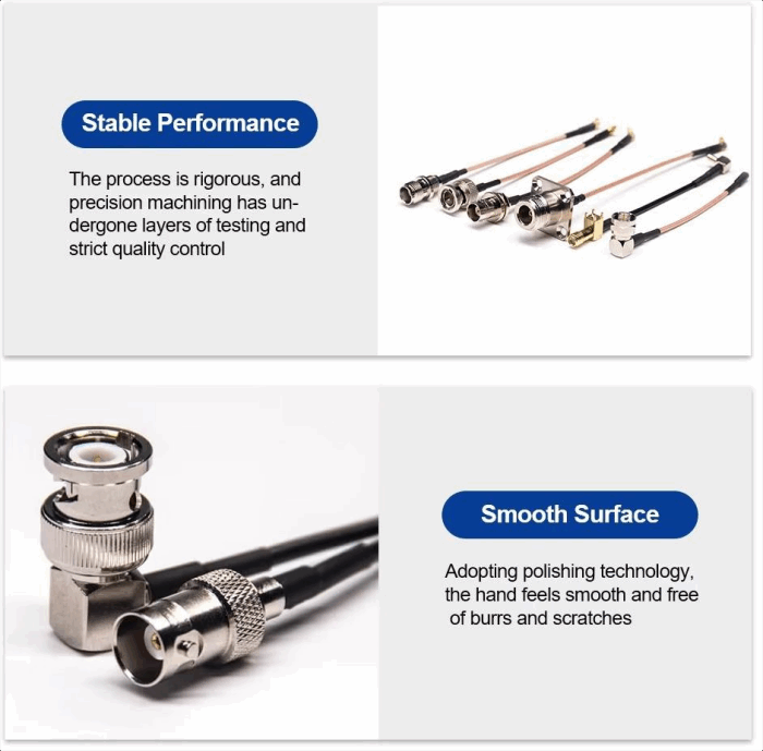RG316-50電纜同軸線 BNC彎公頭轉(zhuǎn)直公頭射頻連接線加工方案